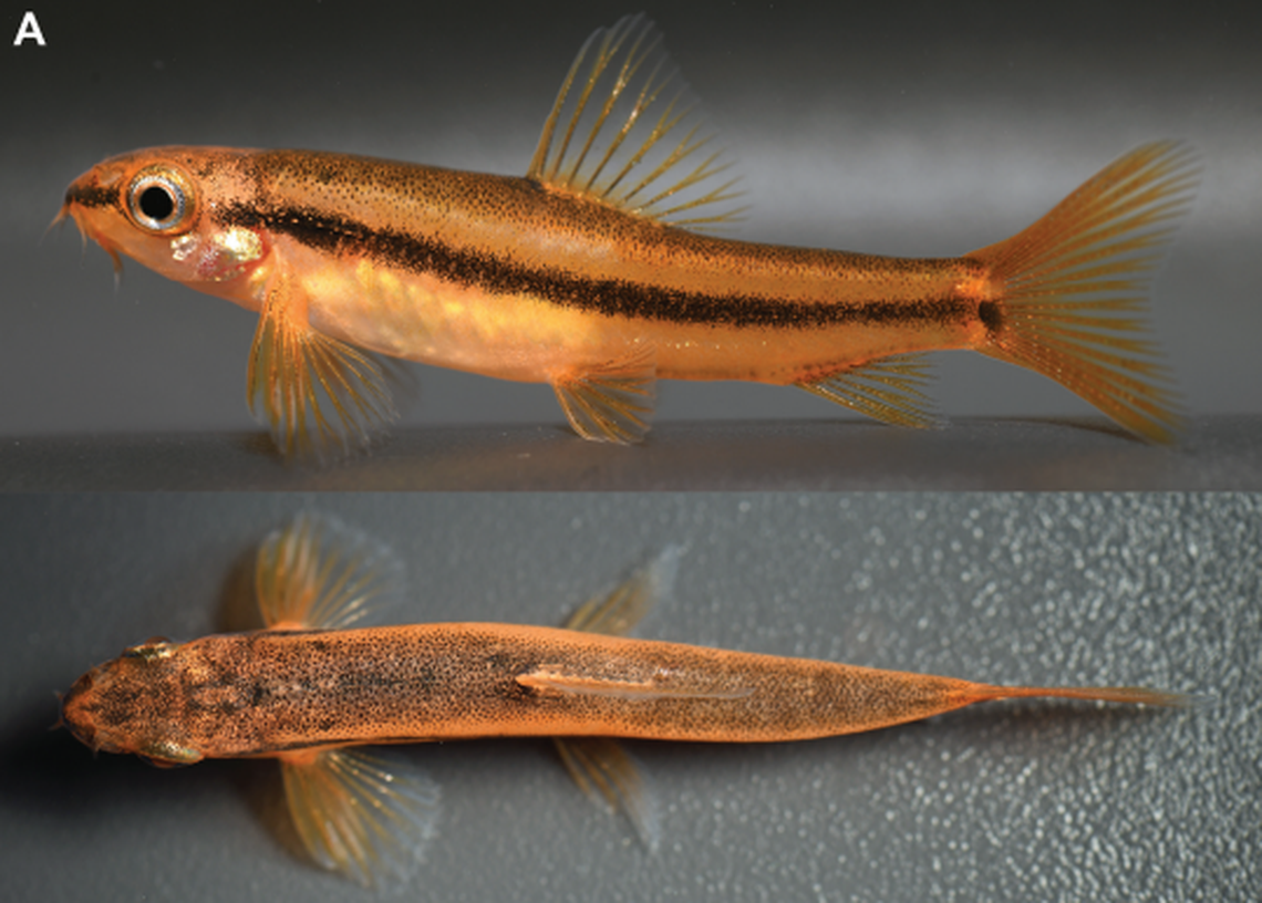 The new species hasn’t been observed in the wild, but scientists said that in aquariums, the fish swim ”in the lower part” of the water between “short periods of rest” on the ground. Adult males have been seen chasing each other and sparring “aggressively” by nipping at each other’s bodies and fins.
