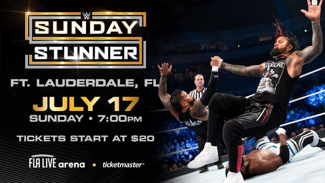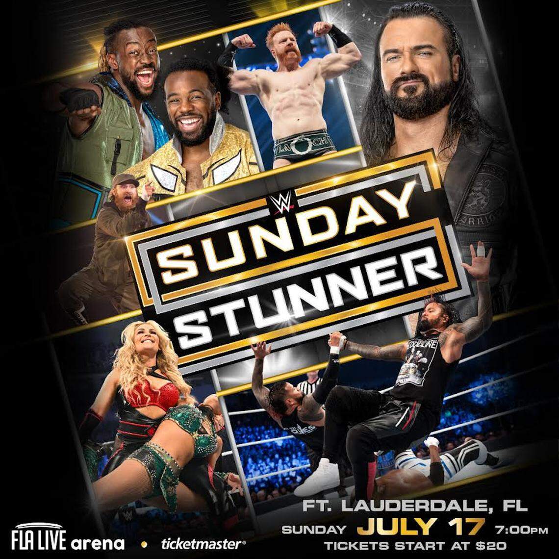 This story was originally published July 14, 2022 at 11:58 AM with the headline "Madcap Moss ready to steal the show and kisses during WWE Sunday Stunner at FLA Live in Sunrise."