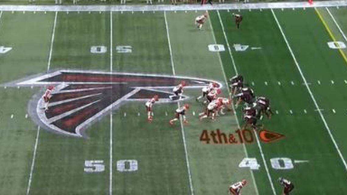 Browns punter Jamie Gillan placed the ball inside the 15-yard line. Falcons punt returner Avery Williams called for a fair catch, but what happened next was judged by the officials as unfair.